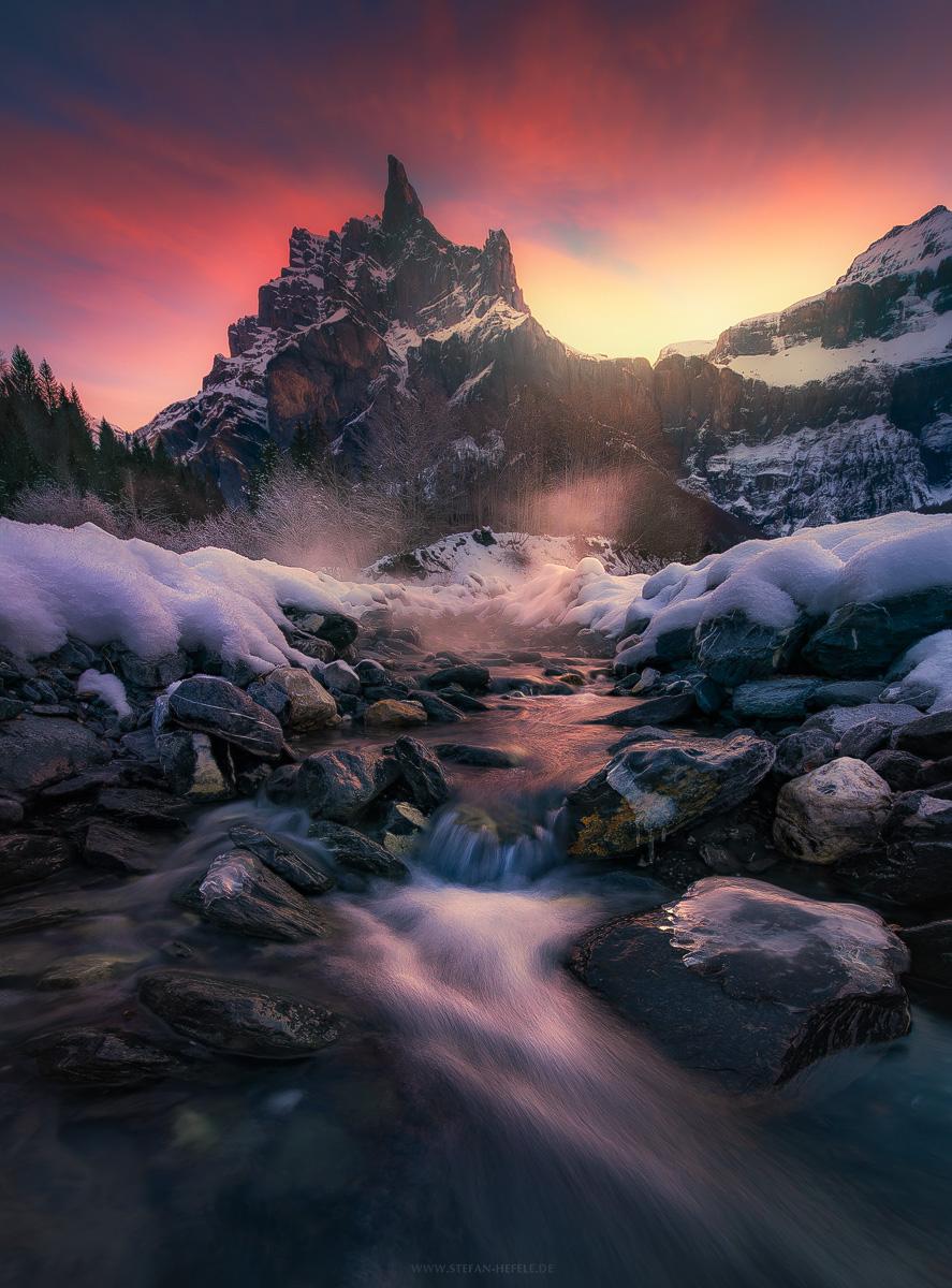 Frankreich, Alpen, Hautes, Savoie, Tal, Paradies, mystisch, Eden, Garten, Wasserfall, Berge, Gebirge, Stimmung, Sonnenuntergang, Licht, Landschaft, Aussicht, episch, Ausblick, Weite, Panorama, Stefan, Hefele, Fotografie, Natur, D800