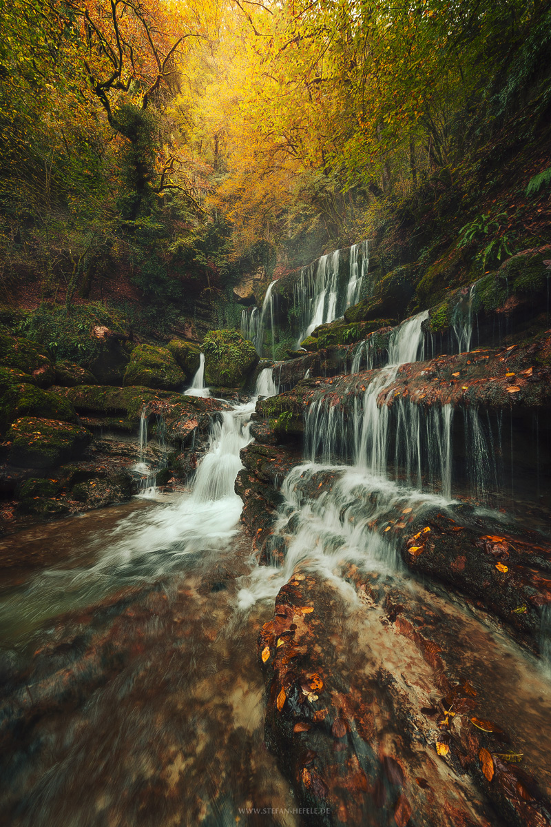 Waterfall in the French Jura - Cascade du Verneau in splendid autumn colours
