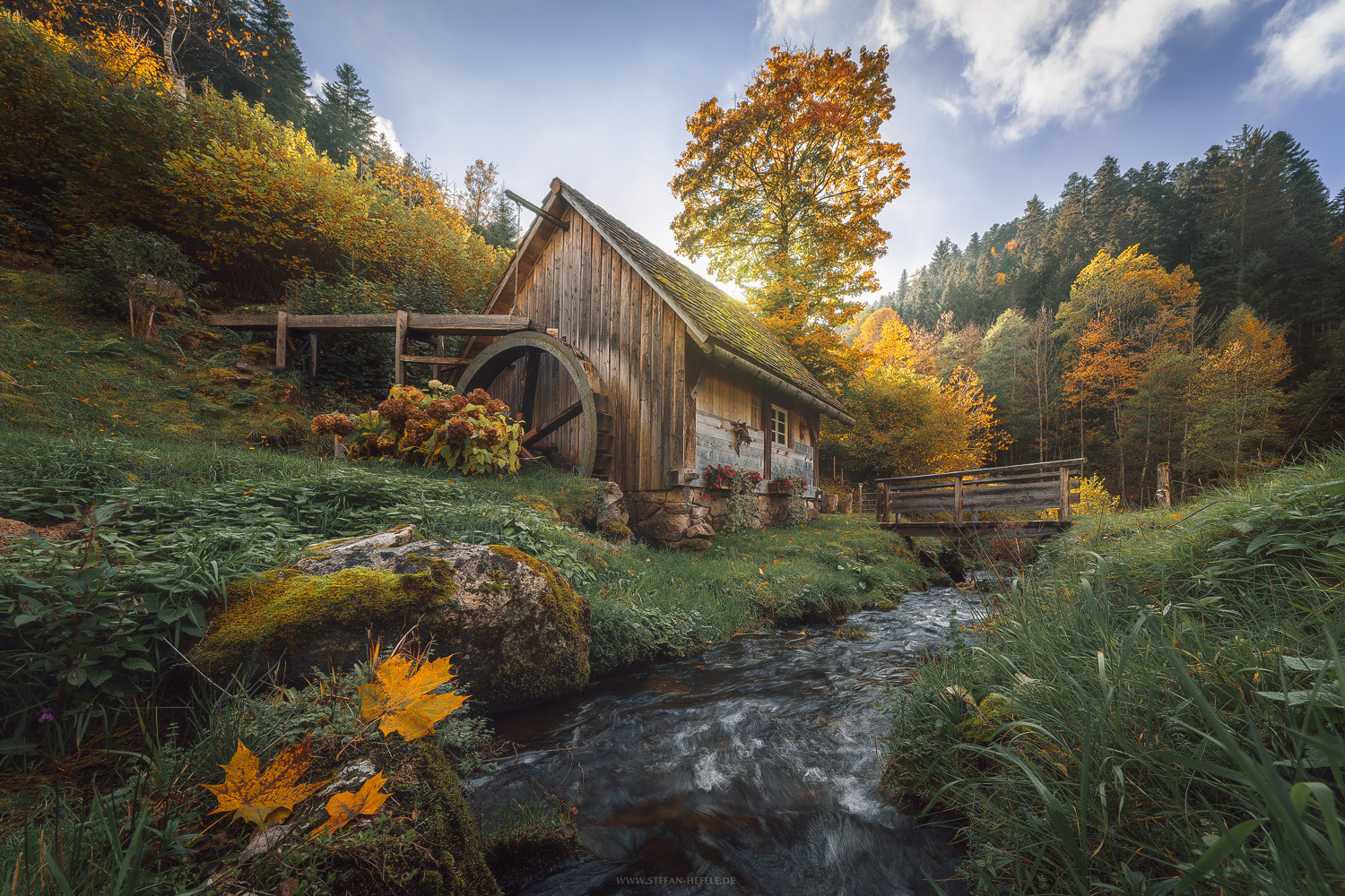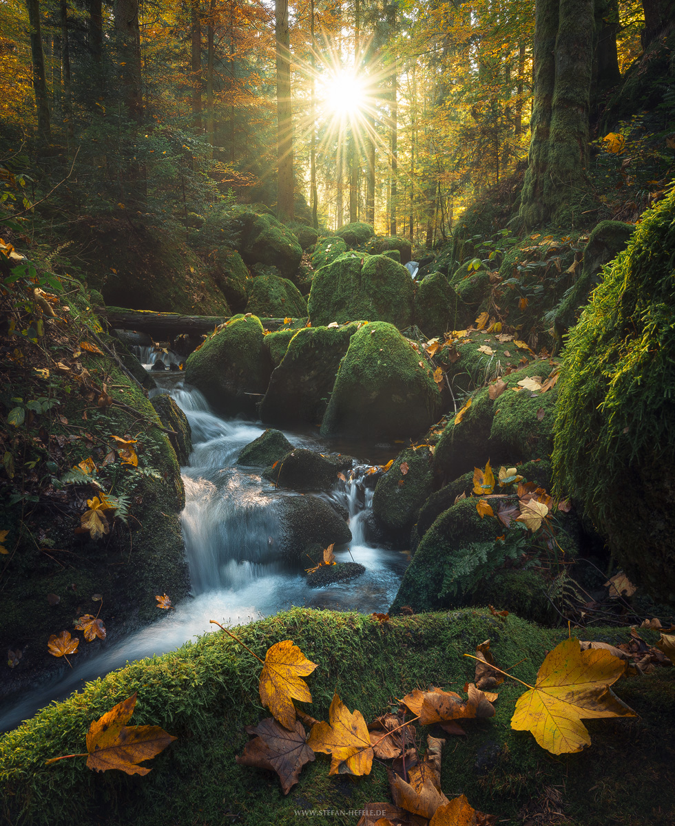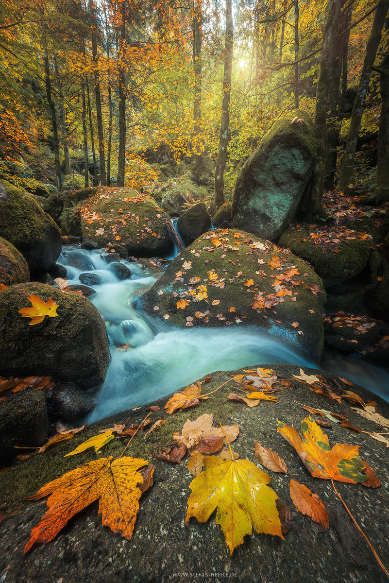 Fantastic autumn atmosphere in the Bavarian Forest National Park at the small Ohe river